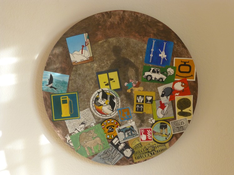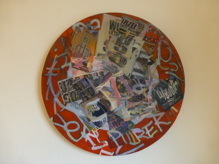 Durchmesser 54 cm, Acryl auf Gips, Papiercollage