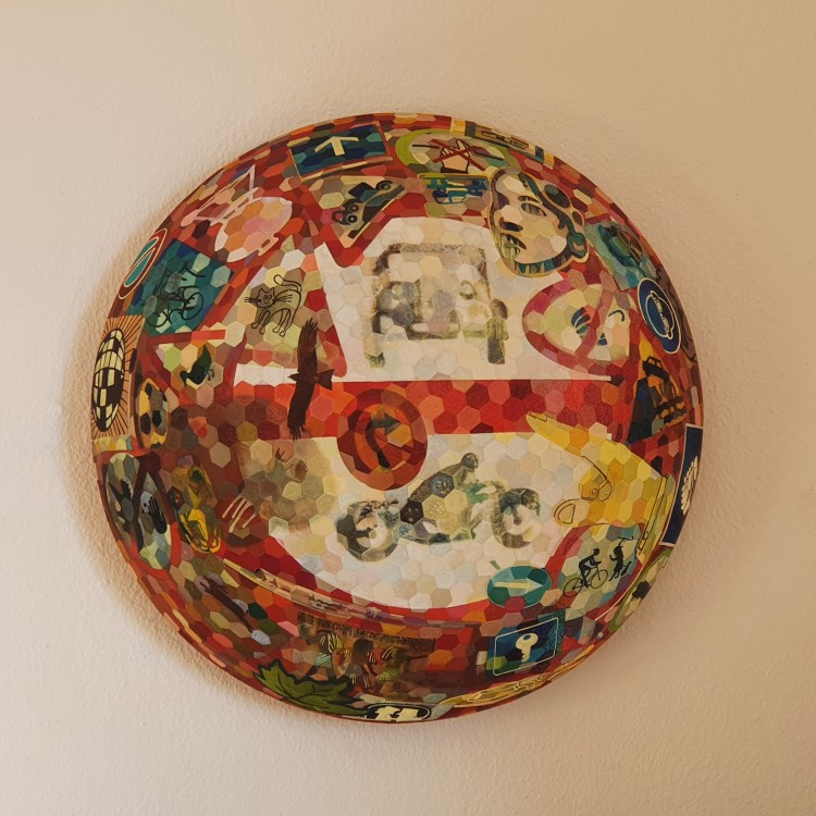 Durchmesser 60 cm, Papiercollage auf MDF, Ölfarbe