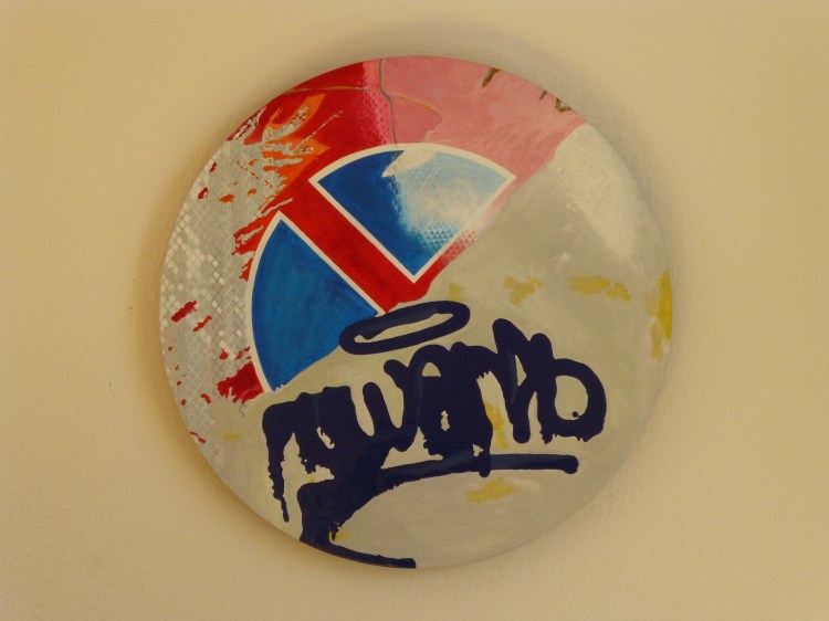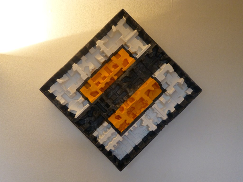 Seitenlänge 88 cm, Karton auf MDF, Ölfarbe, Sprayfarbe