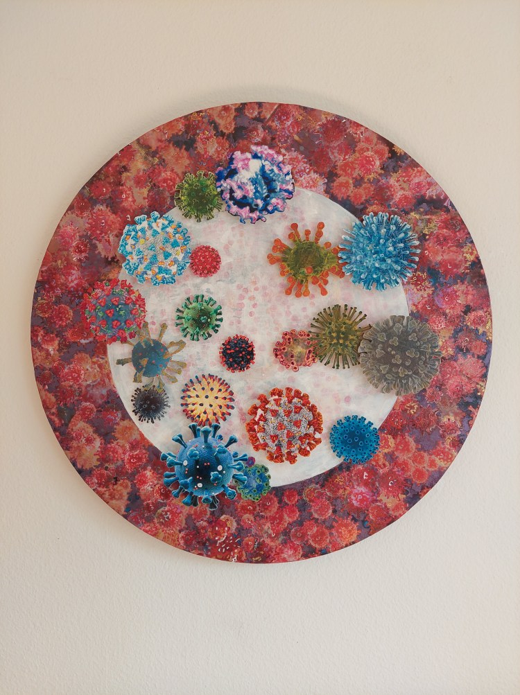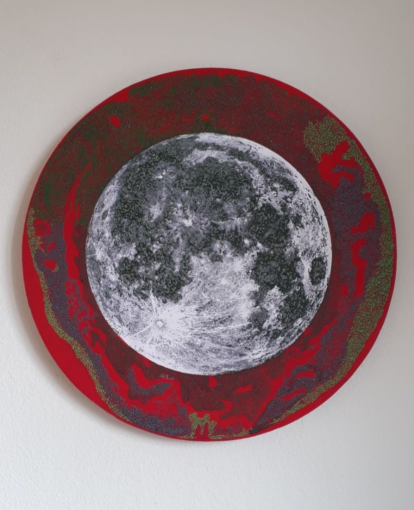 Durchmesser 40 cm, Acrylfarbe und Ölfarbe auf MDF