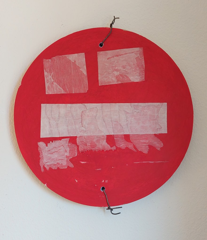 Durchmesser 60 cm, Fotokopie auf MDF, Strukturpaste, Acrylfarbe