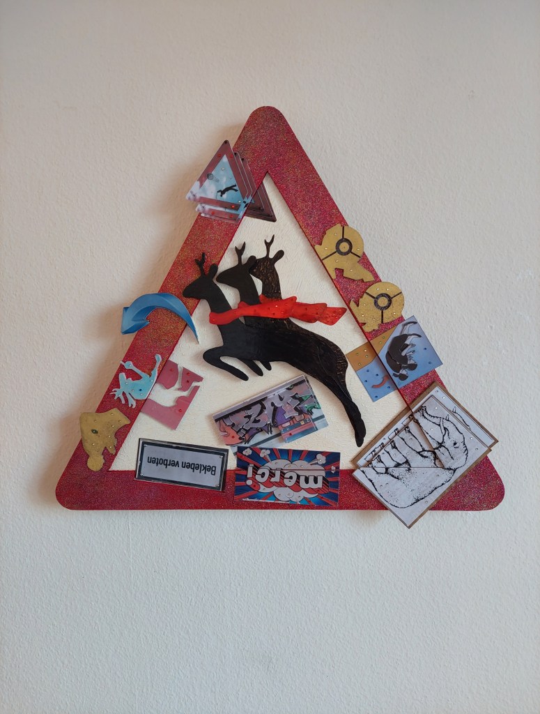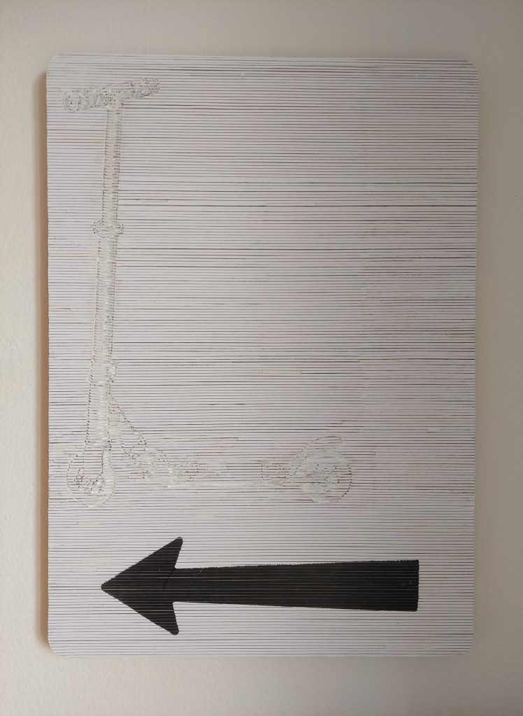 Im Alltag sammle ich Bildnotizen von Strassenschildern. Sei es mit dem Smartphone oder mit dem Fotoapparat, sei es aus Zeitungen oder Reklamebroschüren. Mit unterschiedlichen Materialien und Techniken rekonstruiere und reproduziere ich solche Schilder. Die angefügten Texte interpretieren sie neu. Die Arbeiten befassen sich weiter mit dem Spannungsfeld «Zweidimensionalität» / «Dreidimensionalität» und setzten die entsprechenden Fragen in Form und Text um.